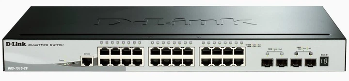 Przełącznik zarządzalny Stackable D-Link DGS-1510-28X SmartPro z 24 portami 10/100/1000Base-T i 4 portami 10GBase-X SFP+. Seria DGS-1510 obejmuje przełączniki SmartPro z portami 10G i jest idealnym rozwiązaniem dla wdrożeń sieciowych SME/SMB. Seria DGS-1510 zapewnia niezawodną łączność i umożliwia łatwe skalowanie istniejącej sieci.