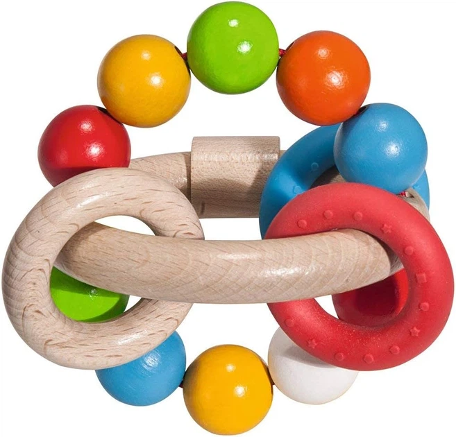 Zabawka dla niemowlaka od 2 miesiąca życia składa się z różnych kółeczek. Dziecko z łatwością wyczuwa wielokolorowe kuleczki na jednym pierścieniu. Ponadto mniejsze pierścienie można łatwo przesuwać do przodu i do tyłu. Dzięki gładkim powierzchniom i różnym kształtom dziecko może ćwiczyć swoje wyczucie dotyku.