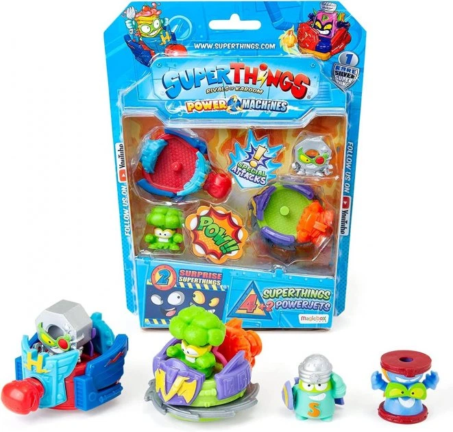 Zestaw zawiera figurki z niezwykle popularnej serii Super Zings. Zawiera 2 pojazdy kabinowe Power Jet z obrotowymi drzwiami i 4 figurki Super Zings: 2 superbohaterów i 2 supervillainów.