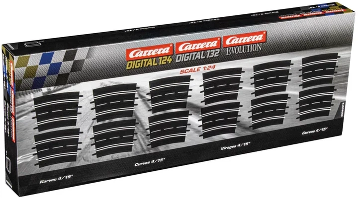 Carrera 20578 Curve 4/15° (12) — zestaw rozszerzający zakrętów do toru wyścigowego Carrera w skali 1:24.