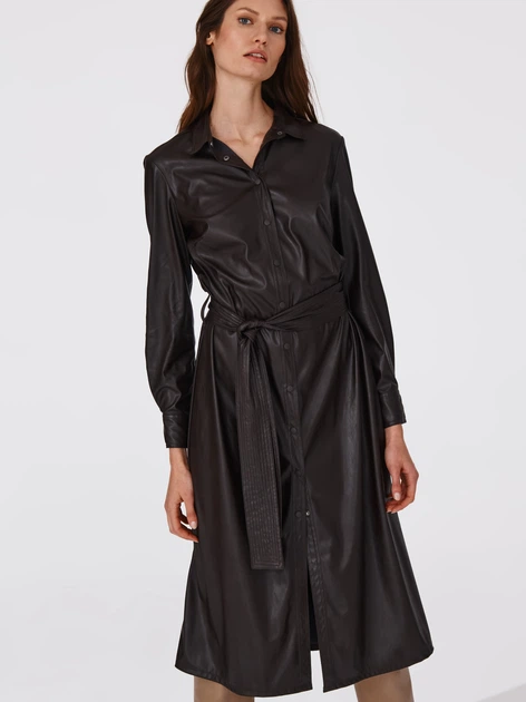 Sukienka midi z paskiem w talii i długimi rękawami. Zapinana na napy. Nadaje się do noszenia na co dzień.