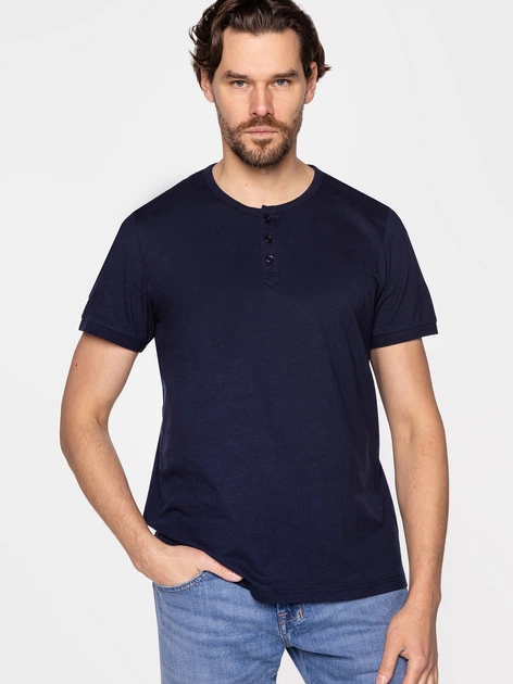 Футболка бавовняна чоловіча Lee Cooper HENLEY-4587 L Темно-синя (5904347395339) - зображення 1
