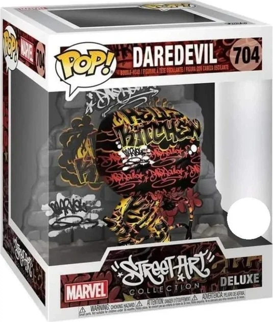 Funko Pop! Deluxe Marvel Street Art Collection Daredevil to wyjątkowa propozycja kolekcjonerska, będąca częścią serii Marvel Street Art. Przedstawia Daredevila – jednego z najpopularniejszych bohaterów Marvela – w nowatorskiej odsłonie inspirowanej sztuką uliczną. Wykonana z najwyższą dbałością o szczegóły, figurka zachwyca charakterystycznym designem, który łączy dynamikę postaci z nowoczesnym artystycznym stylem.