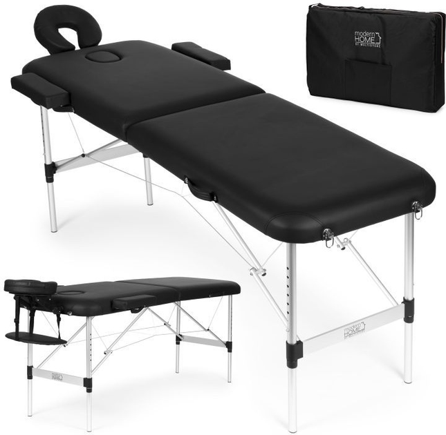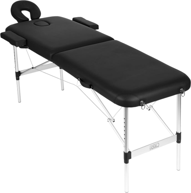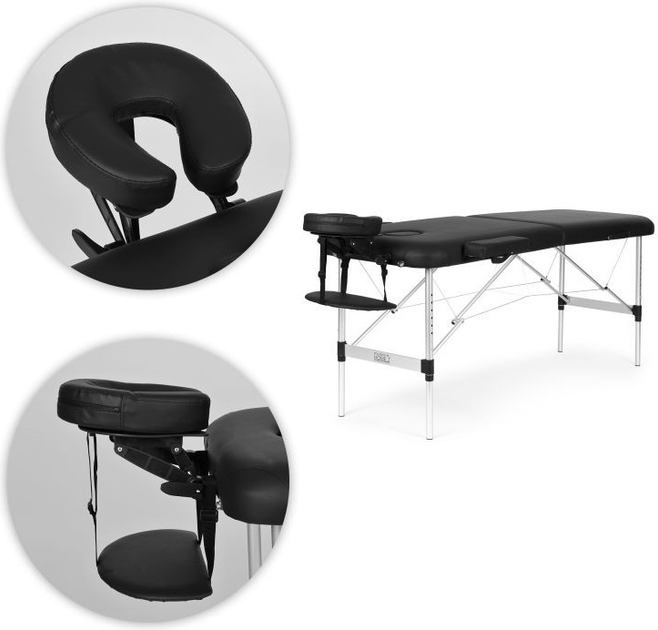 Regulowany zagłówek i wysokość umożliwiają precyzyjne dopasowanie ustawienia do potrzeb zarówno klienta, jak i terapeuty. Otwór w blacie na wysokości klatki piersiowej ułatwia oddychanie w pozycji leżącej na brzuchu, a wiszący podłokietnik pozwala na naturalne ułożenie rąk, zwiększając wygodę podczas masażu. Stół składa się do formy kompaktowej walizki, którą można łatwo przechowywać, a także transportować dzięki dołączonej torbie. Wytrzymałość dynamiczna wynosi 250 kg, a statyczna 625 kg.