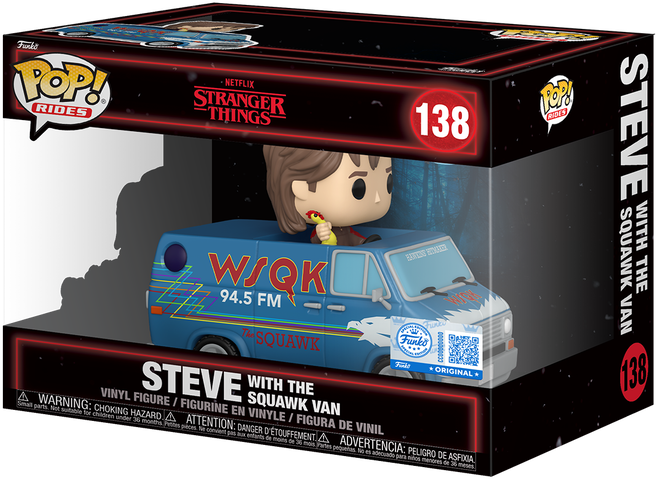 Mroczne siły czają się pod Hawkins w Indianie. Poznaj niebezpieczne i nadprzyrodzone sekrety „Upside Down” razem z ekskluzywną figurką POP! Rides Steve z The Squawk Van! Przenieś do domu wydarzenia, postacie i przełomowe momenty 5 i ostatniego sezonu „Stranger Things”, dodając POP! Rides Steve z The Squawk Van do swojej kolekcji POP! Television. Figurka winylowa ma około 14 cm wysokości.