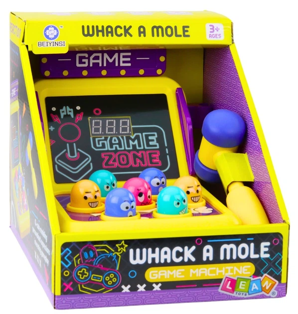 Kolorowa gra zręcznościowa Whack-a-Mole w formie automatu to nowoczesna wersja klasycznej zabawy, która z pewnością zachwyci dzieci zarówno swoją atrakcyjną formą, jak i interaktywnością. Zadaniem dziecka jest uderzanie młotkiem w kolorowe główki wyskakujące z otworów – to doskonałe ćwiczenie refleksu, precyzji oraz koordynacji ruchowej, a jednocześnie świetna okazja do wyładowania dziecięcej energii w kontrolowany i radosny sposób. Duża, efektowna obudowa w stylu retro automatu do gier, wzbogacona o kolorowe grafiki i detale, przyciąga uwagę najmłodszych i nadaje zabawce wyjątkowy charakter.