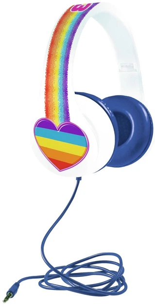 Białe tęczowe słuchawki K3, ograniczenie głośności do 85 dB.