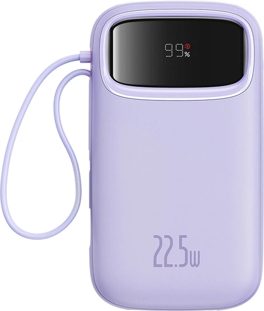 Powerbank Baseus Qpow2 20000 mAh 22.5 WPowerbank Baseus Qpow2 o pojemności 20 000 mAh i mocy wyjściowej 22.5 W to nowoczesne, wydajne i eleganckie źródło zasilania dla Twoich urządzeń mobilnych. Dzięki dwóm wbudowanym kablom – USB-C i Lightning – możesz ładować różne urządzenia bez konieczności stosowania dodatkowych kabli. Kompaktowa konstrukcja, mechanizm zwijania kabla i cyfrowy wyświetlacz LED sprawiają, że urządzenie jest niezwykle wygodne w użyciu. Wysoka wydajność ładowania z obsługą technologii PD, QC i SCP zapewnia szybkie ładowanie smartfonów i tabletów, a system bezpieczeństwa gwarantuje bezpieczeństwo podczas każdego cyklu ładowania. W zestawie znajduje się dodatkowy kabel Baseus Simple USB-C 3A o długości 0.3 m.