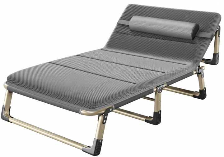 To stylowe składane łóżko polowe łączy w sobie praktyczność z nowoczesnym designem, stanowiąc doskonały wybór zarówno do przestrzeni biurowej, jak i domowego użytku.