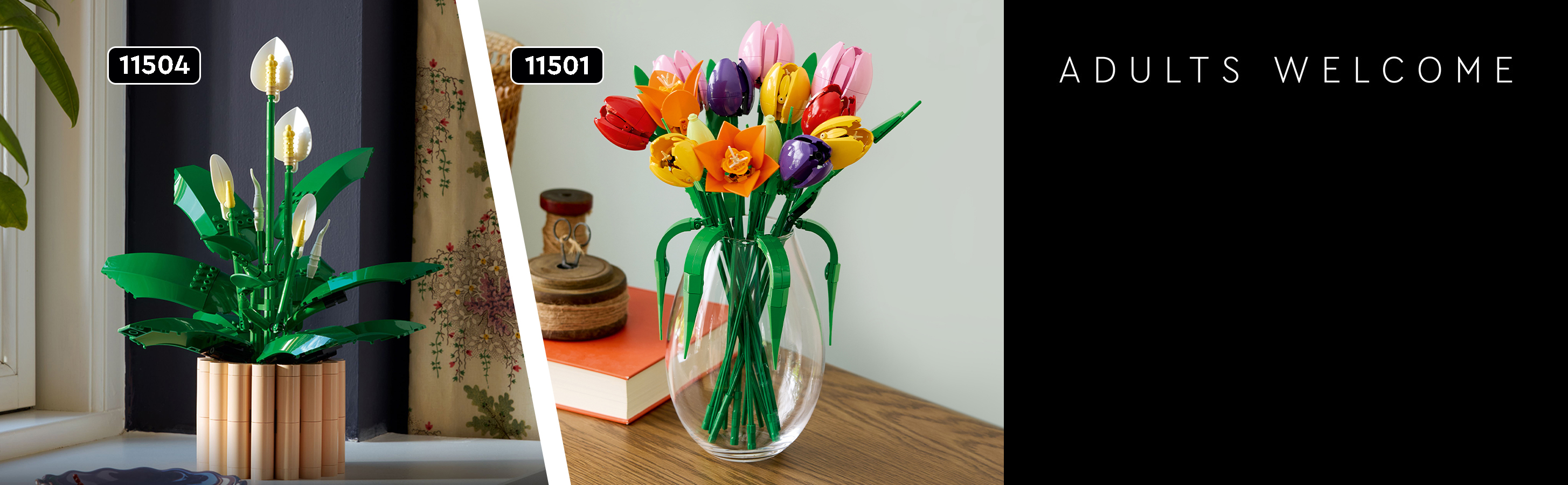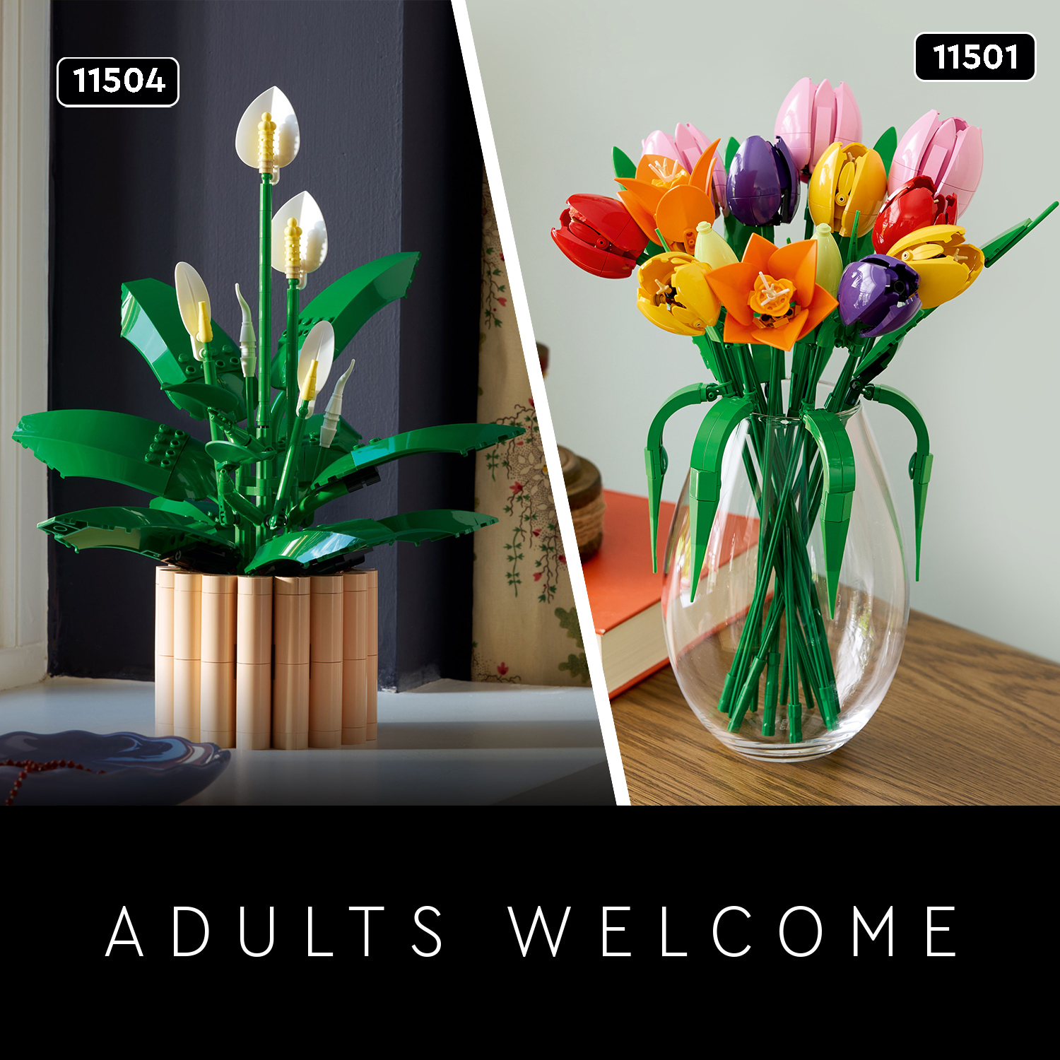 - Квіти LEGO — побудуйте штучні спатифілуми в трьох стадіях розвитку: два згорнуті бутони, дві частково розкриті квітки та дві квітки в повному розквіті