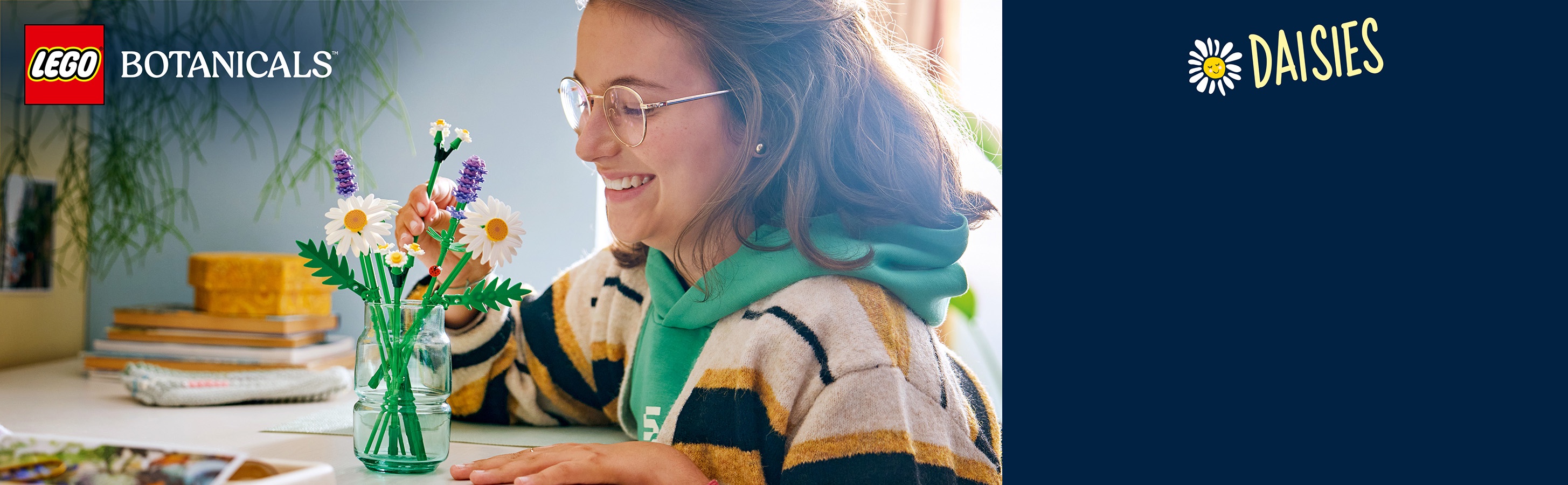 - Квіткові прикраси для спальні — пробудіть у дітей любов до квітів завдяки набору LEGO для дівчаток і хлопчиків від 9 років з ботанічної колекції: LEGO Botanicals Ромашки (11508)