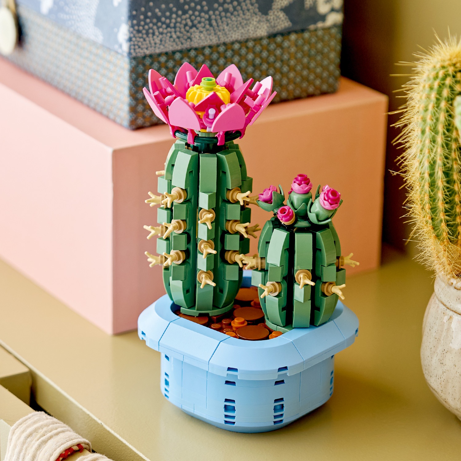 Діти відчують, як розквітає їхня творчість, коли побудують дві моделі кактусів. Більший LEGO кактус у повному розквіті і має рожеву квітку з жовтою серединкою на верхівці, а менший LEGO кактус має рожеві бутони в різних фазах росту. Кактуси мають автентичний відтінок зеленого кольору і розміщені в пастельно-блакитному горщику з кубиків LEGO, завдяки чому після складання діти можуть виставити їх як декорації для спальні або вітальні.