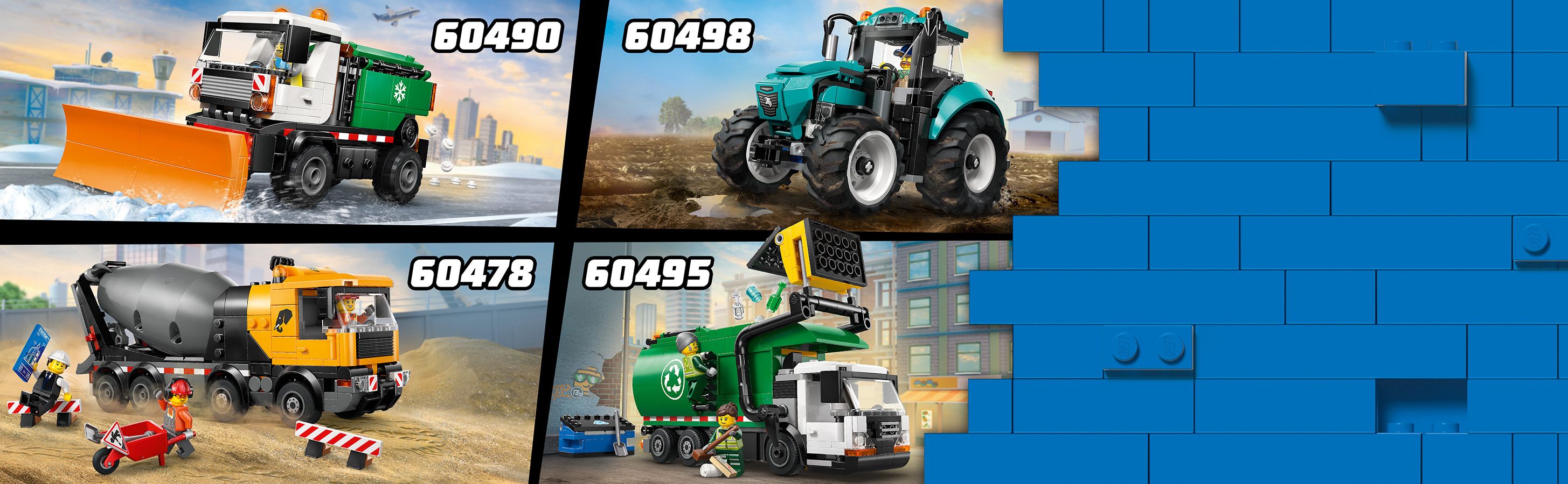 Dodaj ten zestaw konstrukcyjny z traktorem do innych zestawów z serii LEGO City (sprzedawanych oddzielnie), aby przeżyć jeszcze większe przygody.