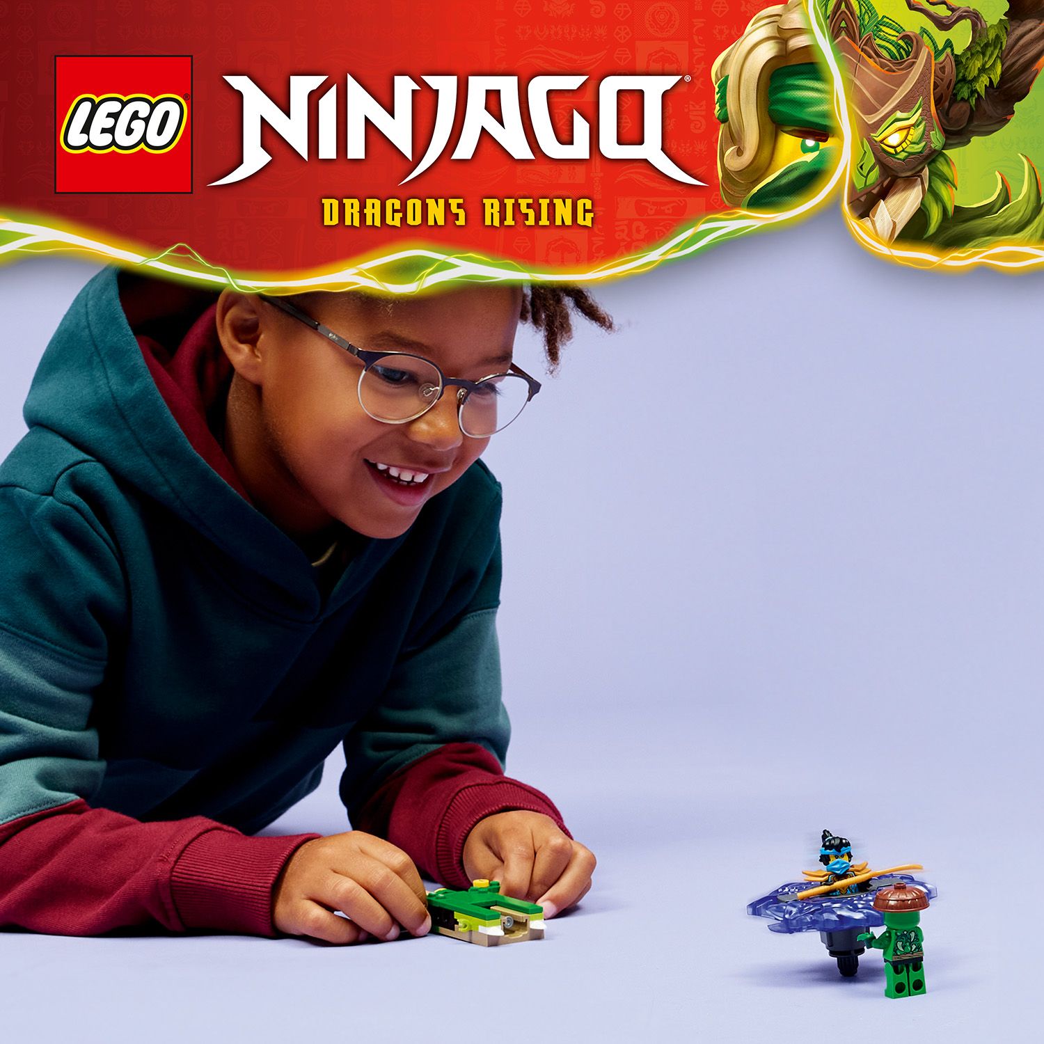 • Postacie z NINJAGO — ten mały zestaw LEGO zawiera minifigurki LEGO NINJAGO Nyi i złowrogiego zmutowanego potwora, który może jeździć na spinnerze, dzięki czemu dzieci mogą odgrywać bitwy dobra ze złem