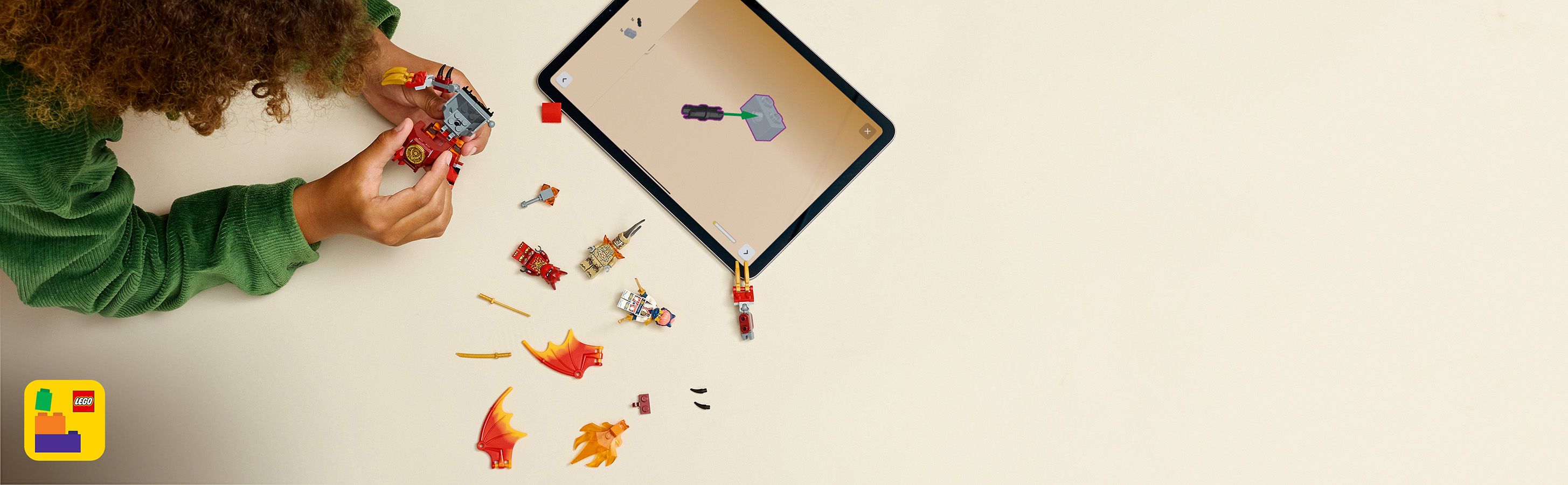 Seria zestawów i zabawek LEGO NINJAGO dla dzieci obejmuje mechy, smoki i świątynie, dzięki którym fani mogą odgrywać scenki z udziałem ninja. Dzieci mogą budować z pewnością siebie, korzystając z aplikacji LEGO Builder, w której można powiększać modele, obracać je w 3D i śledzić postępy dzięki prostym instrukcjom cyfrowym. Zestaw klocków dla dzieci składa się z 85 elementów.