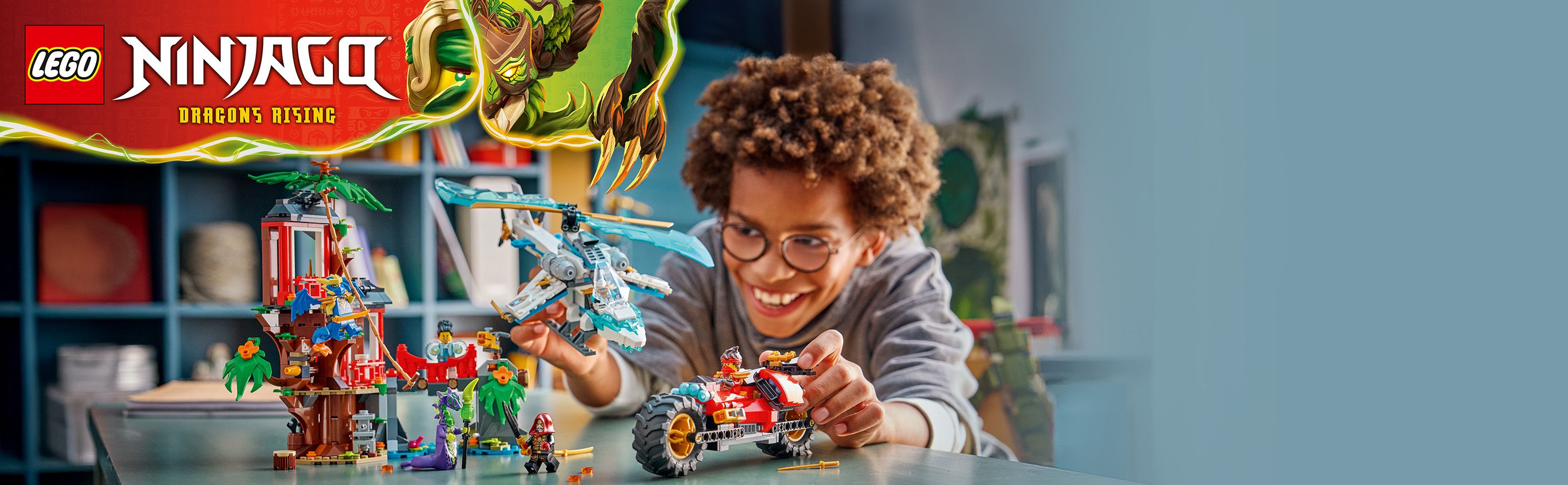 Конструктор «Битва в будиночку на дереві» дозволяє дітям відтворити сцени битв з 4-го сезону телесеріалу «NINJAGO: Повстання драконів».