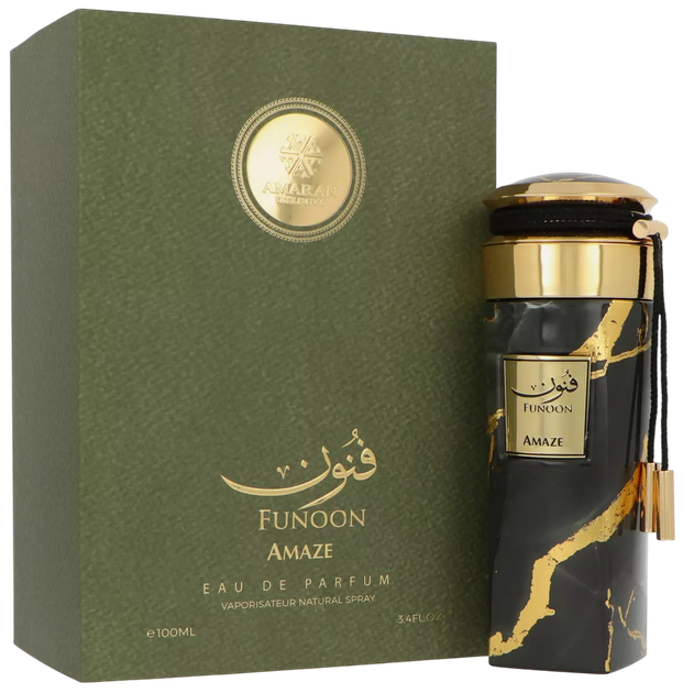 Парфумерна вода Amaran Funoon Amaze 100 мл – це унікальний та енергійний аромат, створений для тих, хто цінує оригінальність, свіжість та неповторний стиль. Аромат відкривається соковитими фруктовими та цитрусовими нотами, що надають йому легкого та динамічного характеру. У серці парфумів розкриваються квіткові акорди, що вносять ніжність та чуттєвість, що ідеально врівноважують інтенсивність початкових нот. База композиції базується на теплих та стійких нотах деревини, амбри та мускусу, що надають парфумам глибини та елегантності, а також забезпечують тривалий ефект на шкірі. Funoon Amaze – це аромат, ідеальний як для щоденного носіння, так і для вечора, підкреслюючи індивідуальність, впевненість у собі та сучасний характер власника. Завдяки високій концентрації ефірних олій він тримається на шкірі багато годин, поступово розвиваючись та розкриваючи свої багаті грані. Флакон об'ємом 100 мл має сучасний та стильний дизайн, який ідеально відображає розкішний характер бренду Amaran. Це ідеальний вибір для тих, хто шукає свіжий, енергійний та елегантний аромат, що поєднує радість життя з класичною вишуканістю.