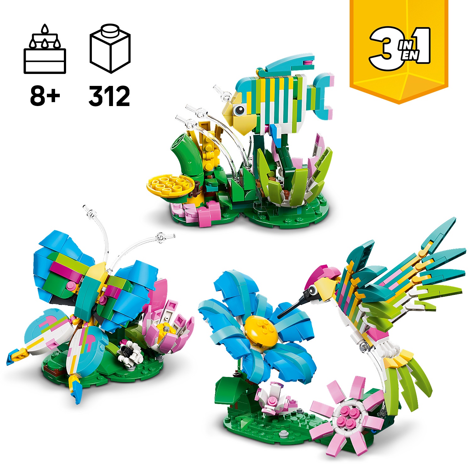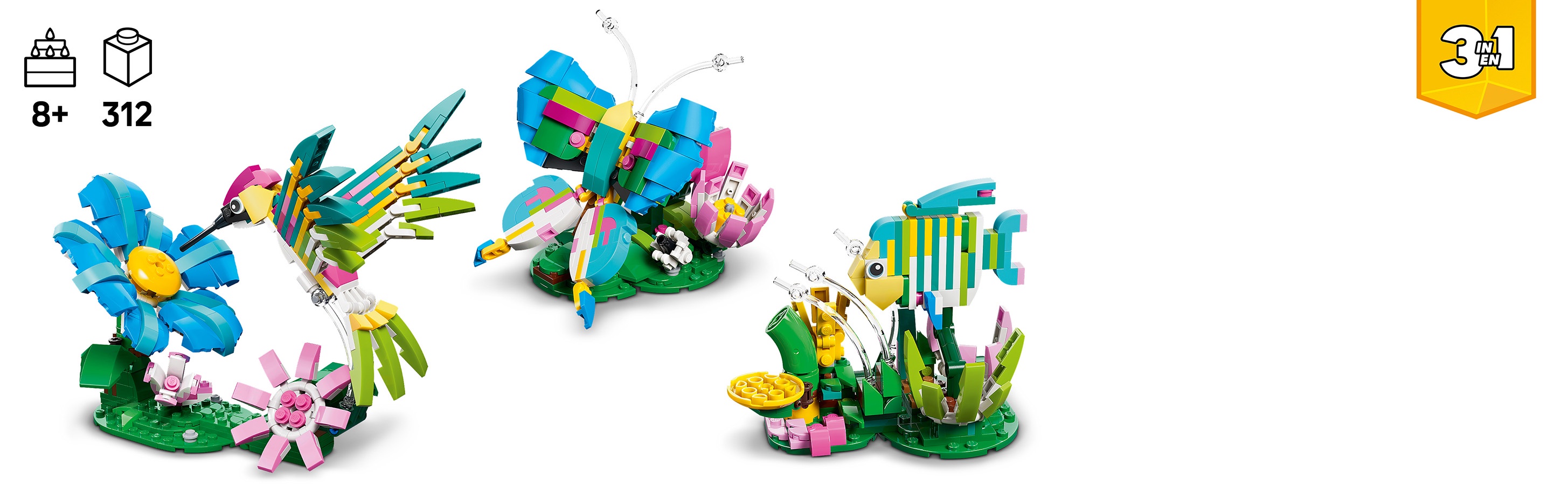 Zbuduj zestaw LEGO Creator 3 w 1 "Dzikie zwierzęta: kolorowy koliber", a następnie przebuduj go w motyla lub tropikalną rybę.