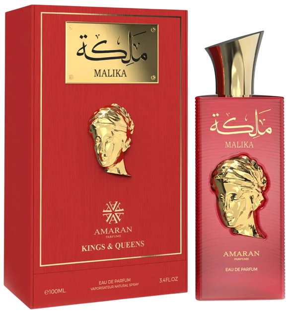 Amaran Kings & Queens Malika Eau de Parfum 100 ml to elegancka, kobieca i zmysłowa kompozycja zapachowa stworzona z myślą o osobach ceniących luksus i wyrafinowany styl. Zapach otwiera się świeżymi i soczystymi akordami cytrusów oraz owoców, które nadają mu lekkości i energii już od pierwszego kontaktu. W sercu perfum rozkwitają kwiatowe nuty jaśminu, róży oraz białych kwiatów, nadając całości romantycznego i subtelnego charakteru. Baza zapachu to ciepłe, otulające akordy bursztynu, piżma oraz drzewa sandałowego, które zapewniają trwałość i nadają mu eleganckiego, orientalnego wykończenia. Malika to zapach idealny na co dzień, ale również doskonale sprawdzający się podczas wyjątkowych okazji – podkreśla pewność siebie, kobiecość i naturalny urok osoby, która go nosi. Dzięki wysokiemu stężeniu olejków zapachowych utrzymuje się na skórze przez wiele godzin, rozwijając się stopniowo i ukazując kolejne warstwy swojej wyjątkowej kompozycji. Flakon o pojemności 100 ml wyróżnia się eleganckim i nowoczesnym designem, który doskonale odzwierciedla luksusowy charakter marki Amaran Kings & Queens. To doskonała propozycja dla osób poszukujących zapachu, który łączy w sobie świeżość, zmysłowość i klasyczną elegancję.