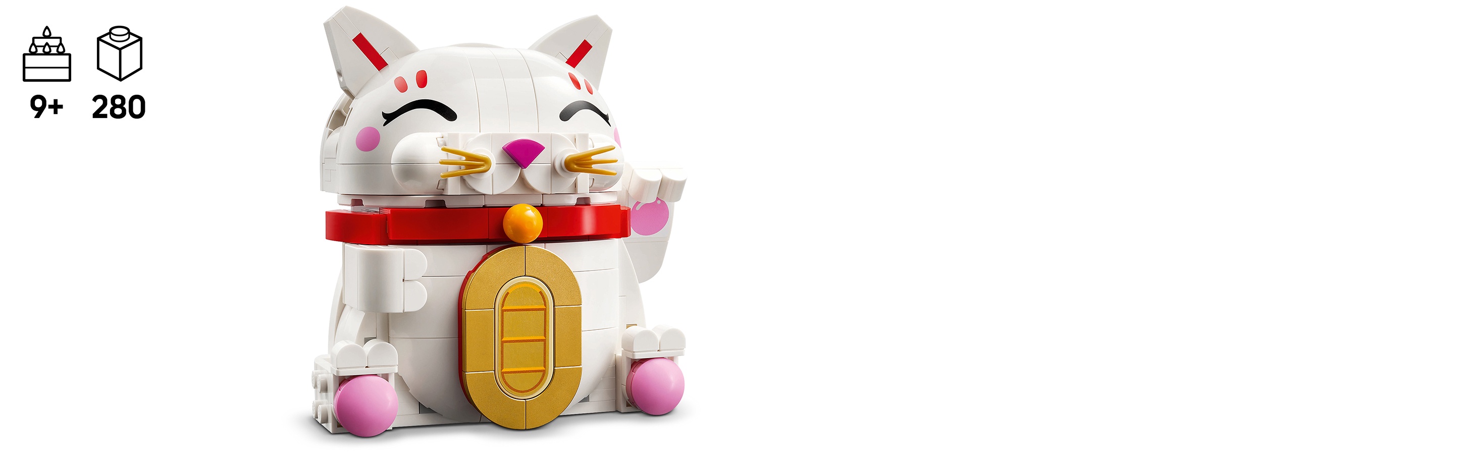 Zestaw LEGO Lucky Cat tworzy efektowną dekorację z motywem zwierzęcym do każdego pomieszczenia i może przynieść szczęście jego właścicielowi!