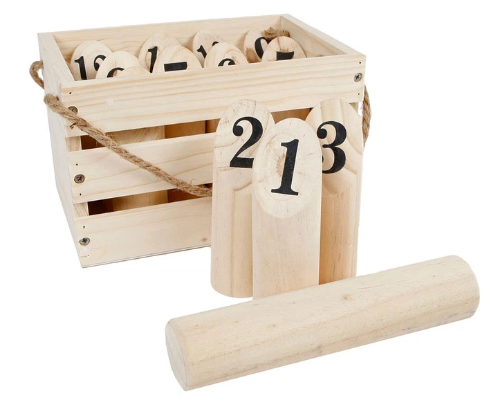 Zestaw zawiera 13 solidnych, drewnianych kręgli i poręczne pudełko do przechowywania. Dzięki naturalnemu drewnu i prostej konstrukcji, gra w rzuty jest nie tylko zabawna, ale także trwała i odpowiednia dla młodszych i starszych. Rozstaw kręgle, chwyć kij do rzucania i zacznij grę!