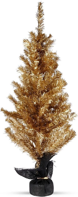 Sztuczna choinka w kolorze złotym prezentuje się bardzo efektownie. Będzie wyjątkowym elementem dekoracyjnym w okresie świąt Bożego Narodzenia. Nada oryginalnego charakteru każdemu wnętrzu. Choinka stanowi doskonałą bazę do umieszczenia dowolnych dekoracji, takich jak bombki czy światełka, tworząc wspaniałą, świąteczną ozdobę. Oryginalny produkt holenderskiej marki Home Styling Collection. Wyprodukowano zgodnie z europejskimi standardami.