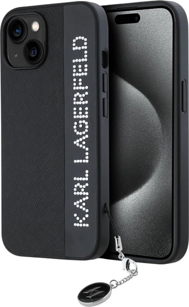 Елегантний чохол типу hardcase вирізняється стильним чорним оздобленням з текстурою Saffiano, що надає йому розкішного вигляду і водночас забезпечує міцність та стійкість до подряпин. Крім того, чохол прикрашено витонченими камінцями, що підкреслюють ім'я та прізвище відомого дизайнера, а також підвіскою з ініціалами, що додає йому елегантності та виняткового характеру.