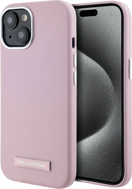 To eleganckie etui wykonane jest z wysokiej jakości skóry ekologicznej, która nadaje mu subtelny, matowy wygląd. Dodatkowo wyróżniają je metalowe wstawki wokół ramki aparatu oraz na bocznych przyciskach, co podkreśla dbałość o szczegóły. Natomiast w dolnej części etui, znajduje się emblemat z logo Karla Lagerfelda, który dodaje całości luksusowego akcentu.