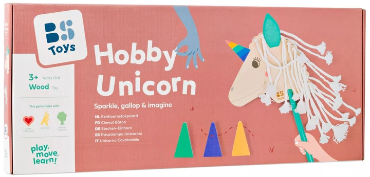 Drewniana zabawka na patyku BS Toys Jednorożec + 3 kolorowe stożki (4690701) (8717775445302). Wkrocz do świata wyobraźni z tym magicznym drewnianym jednorożcem na kiju! Dzieci mogą jeździć między 3 kolorowymi stożkami, tworząc własne fascynujące tory przeszkód i przygody. Idealna do aktywnej zabawy, rozwijania równowagi i zabawy na świeżym powietrzu.