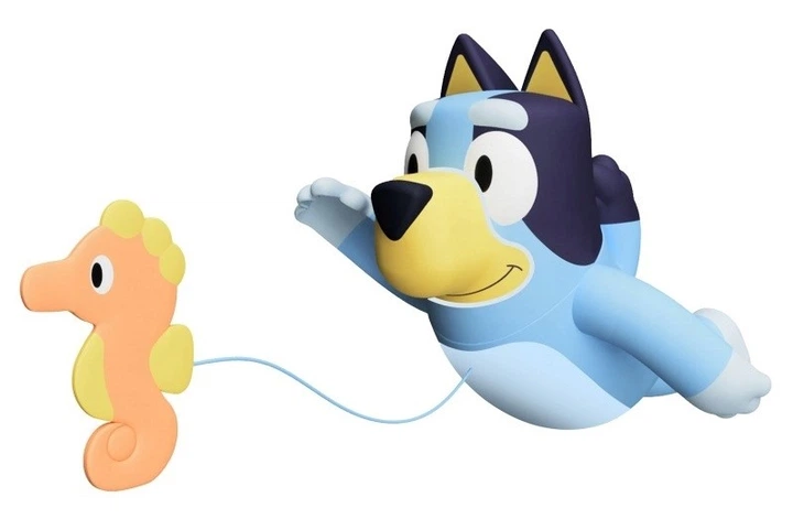 Teraz Twoje dziecko może doświadczyć niekończącej się zabawy bezpośrednio w wannie lub basenie. Wystarczy pociągnąć za konika morskiego i obserwować, jak Bluey pływa piersi przez całą wannę.