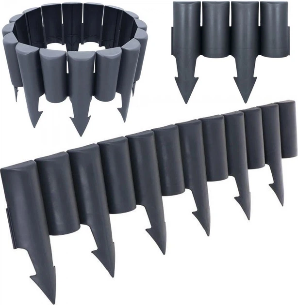 Zestaw składający się z 10 sztuk obrzeży ogrodowych o łącznej długości po złożeniu 250 cm. Niezwykle solidnie wykonany z wysokiej jakości tworzywa w ciemnoszarym kolorze. Stanowi efektowną i praktyczną ozdobę w ogrodzie. Dekoracyjny płotek ogrodowy będzie wyjątkowym obrzeżem dla roślin w ogrodzie. Odporny na warunki atmosferyczne. Oryginalny produkt marki Vilde. Wyprodukowano zgodnie z europejskimi standardami.