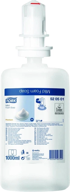 Tork Premium доглядає за всіма типами шкіри. Має тонкий аромат, містить зволожуючі і відновлюючі інгредієнти та утворює м'яку кремову піну для дбайливого миття рук. Підходить для диспенсерів для мила-піни