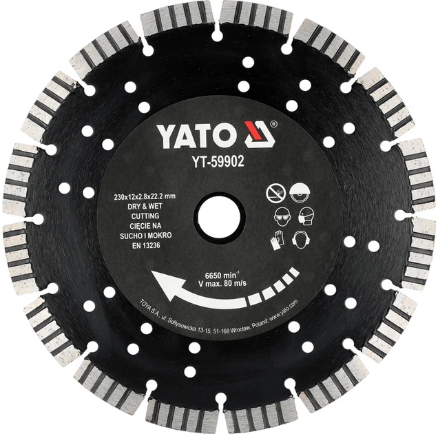 Tarcza diamentowa do precyzyjnego cięcia na sucho i mokro betonu utwardzonego, cegły, granitu, muru, kamienia, piaskowca.