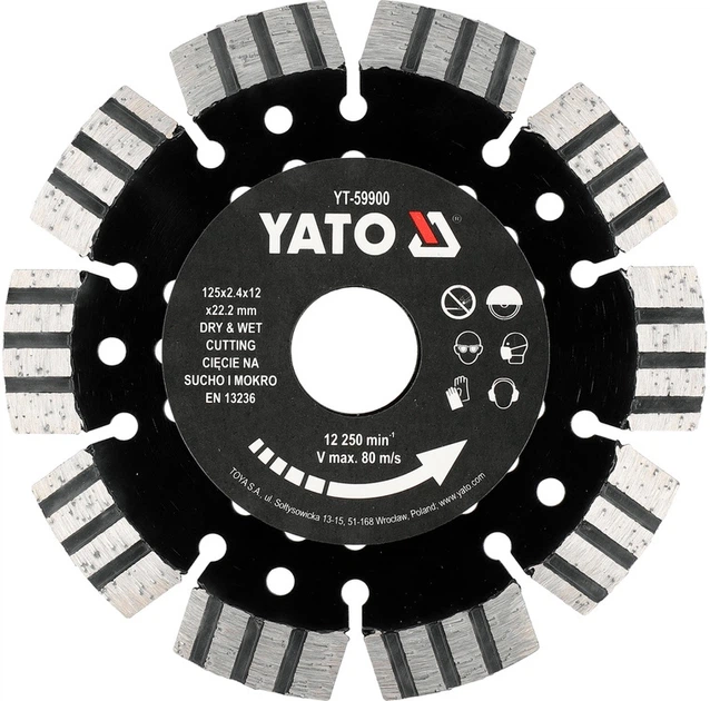 Tarcza diamentowa do precyzyjnego cięcia na sucho i mokro betonu utwardzonego, cegły, granitu, muru, kamienia, piaskowca.