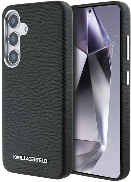 Etui Karl Lagerfeld Saffiano Full Wrapped Elongated Metal Logo MagSafe do Samsung Galaxy S25 Plus Black (3666339450243) - obraz 1