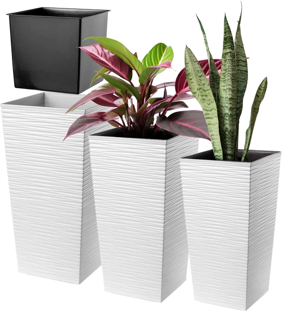 Donice na kwiaty z wkładem Kadax Tuluza K8061 25 cm + 30 cm + 35 cm Białe - obraz 1