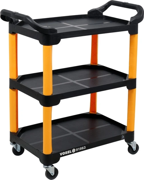 Wózek warsztatowy kompozytowy 3-poziomowy 81863 marki VOREL to praktyczne rozwiązanie do organizacji narzędzi i akcesoriów w warsztacie, garażu oraz podczas prac serwisowych. Lekka, a jednocześnie stabilna konstrukcja sprawdza się w codziennym użytkowaniu, ułatwiając transport wyposażenia między stanowiskami pracy.