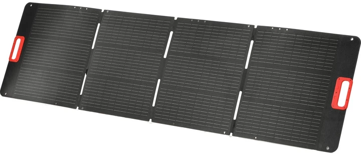 Panel słoneczny Yato YT-98201 składany solarny 4 w 1 200 W (5906083118913). Składany panel solarny o mocy wyjściowej 200 wat jest przenośnym źródłem energii. Laminacja ogniwa słonecznego z ETFE gwarantuje odporność na warunki atmosferyczne. Regulacja wsporników pozwala ustawić panel w dogodnej pozycji względem promieni słonecznych lub zawiesić w wybranym miejscu dzięki otworom montażowym. Panel po złożeniu ma niewielkie wymiary, które w połączeniu z wbudowanymi uchwytami sprawiają, że jest łatwy w przenoszeniu.