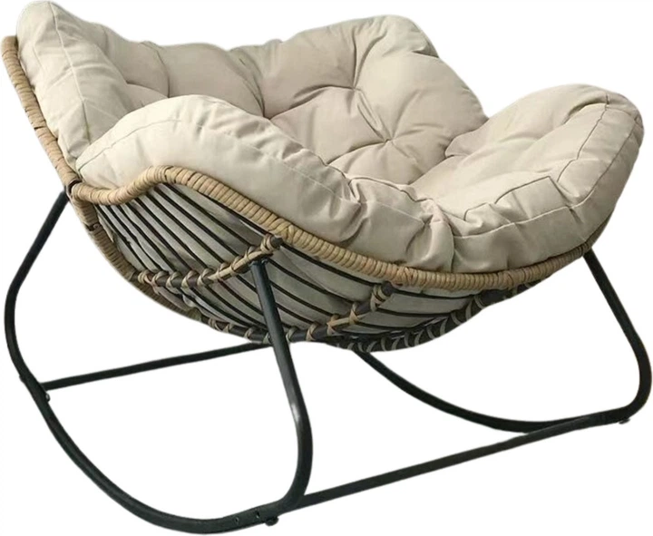 Wprowadź do swojego wnętrza przytulny klimat i styl dzięki temu beżowemu fotelowi bujanemu z rattanu. Jego miękka poduszka w ciepłym beżowym odcieniu zaprasza do relaksu, zapewniając komfort przy każdej okazji. Połączenie naturalnego rattanu i solidnej, metalowej ramy sprawia, że fotel jest nie tylko wygodny, ale i wytrzymały – idealny do codziennego użytku w różnych przestrzeniach.