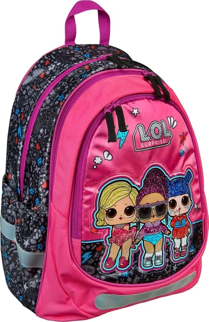 Model oferuje trzy przegrody zapinane na zamki błyskawiczne, w tym przestronną komorę główną, w której bez problemu zmieszczą się książki, zeszyty i przybory szkolne. Dodatkowe elastyczne kieszenie boczne idealnie nadają się na bidon lub lunch box. Całość dopełnia trójwymiarowy wizerunek laleczek L.O.L Surprise z brokatowymi akcentami, który nadaje plecakowi wyjątkowego charakteru.