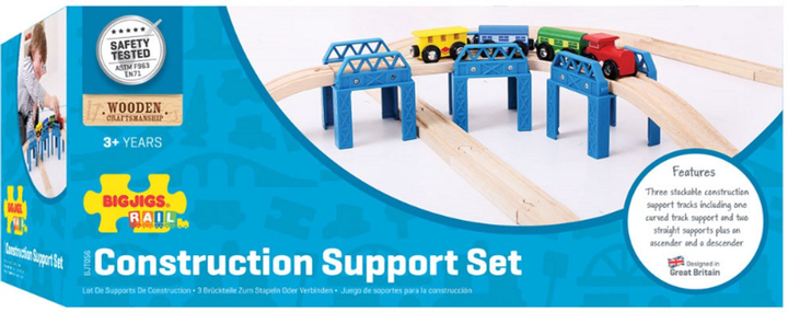 Drewniany zestaw konstrukcyjny Bigjigs Rail do budowy mostu to doskonałe wyzwanie dla młodych inżynierów. Zawiera trzy podniesione sekcje oraz tory podjazdowe i zjazdowe, dzięki czemu pozwala tworzyć bardziej złożone trasy i urozmaicać zabawę. To idealny dodatek do każdej drewnianej kolei, który rozwija kreatywność i wyobraźnię.