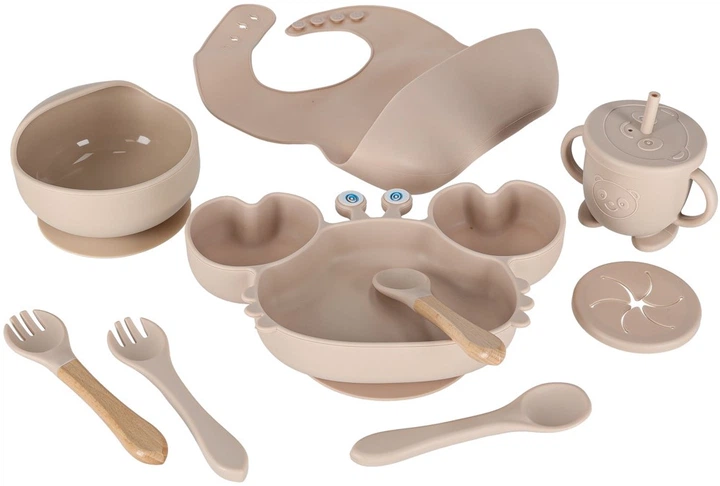Набір посуду для дітей Kik силіконовий краб бежевий 9 шт (5903039767973)