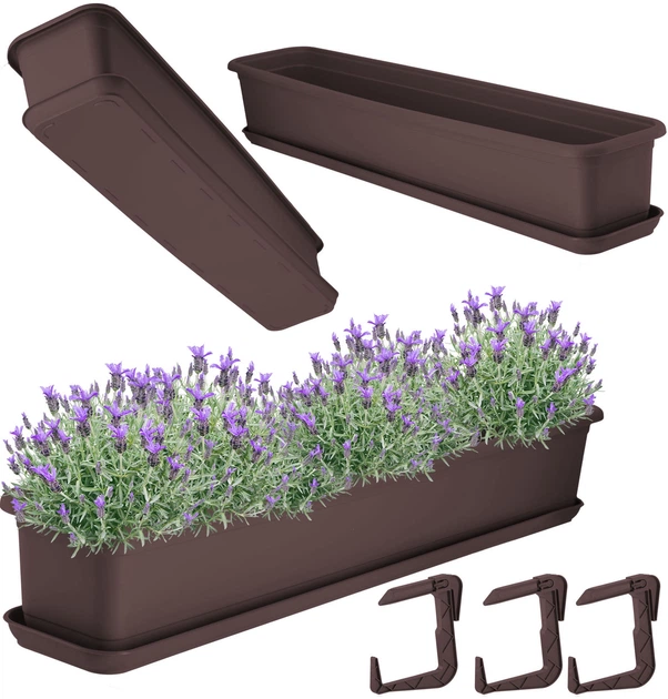 Zestaw donica balkonowa Kadax Evron 83 x 17.9 x 13.4 cm + Ucwyty Brązowe 3 szt (K8935)
