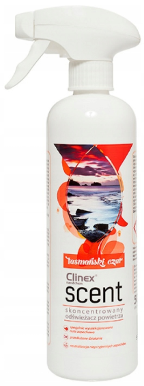 Clinex Scent - це унікальний, висококонцентрований освіжувач повітря для використання в усіх типах приміщень, ідеально підходить для освіження повітря в офісах, місцях для куріння, гостьових кімнатах та туалетах. Розроблений спеціально для індустрії гостинності, його унікальний аромат робить його ефективним у боротьбі з запахами в усіх зонах. Продукт також має властивості нейтралізації запахів, що робить його придатним для використання в громадських місцях, де регулярне прибирання ускладнене (наприклад, громадські туалети).