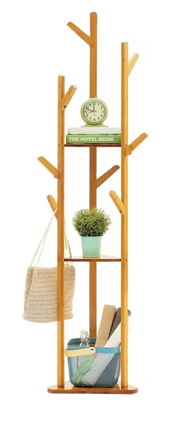 Ця бамбукова вішалка для пальто поєднує функціональність та естетику, роблячи її практичним та елегантним доповненням до будь-якого інтер'єру.