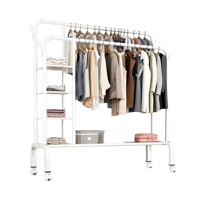 - Нижня полиця: Полицю внизу вішалки можна використовувати різними способами – від зберігання взуття до кошиків для білизни, контейнерів для організації та аксесуарів.