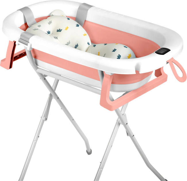 Wanienka dla dzieci Ricokids skladana ze stelazem termometrem i wkladka bialo-rozowa 85 x 45 x 21 cm (5903890629236) - obraz 5