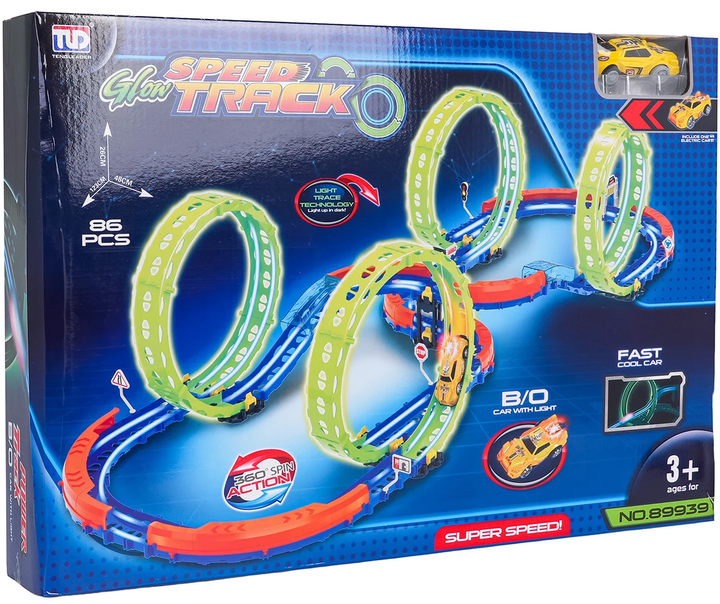 Флуоресцентная гоночная трасса из 86 деталей для детей от 3 лет