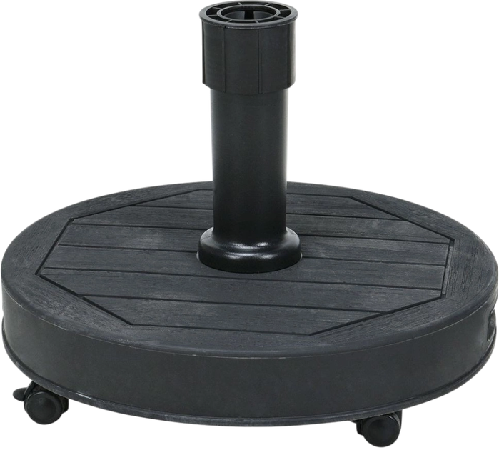 Betonowa podstawa do parasola ogrodowego Vilde o wadze 27 kg to wyjątkowo mocny i stabilny stojak, zaprojektowany do bezpiecznego mocowania dużych parasoli ogrodowych w każdych warunkach. Średnica 48.5 cm i grubość 7 cm zapewniają maksymalną stabilność, a waga 27 kg gwarantuje, że parasol nie przewróci się nawet przy silnym wietrze. Podstawa wykonana jest z betonu i wysokiej jakości tworzywa drewnopodobnego, które łączy w sobie trwałość, estetykę oraz odporność na deszcz, śnieg i intensywne światło słoneczne. Dla wygodnego przemieszczania konstrukcja wyposażona jest w 4 koła, z których dwa posiadają hamulce – pozwala to na łatwe przemieszczanie parasola po ogrodzie, tarasie lub balkonie bez zbędnego wysiłku. Nadaje się do parasoli o średnicy rurki 32–50 mm, co czyni ją uniwersalnym rozwiązaniem dla większości modeli. Antracytowy kolor dodaje stylowego wyglądu i harmonijnie wpisuje się w każdy projekt krajobrazu. Wyprodukowana zgodnie z normami europejskimi, podstawa ta gwarantuje niezawodność, bezpieczeństwo i komfort użytkowania parasola ogrodowego.