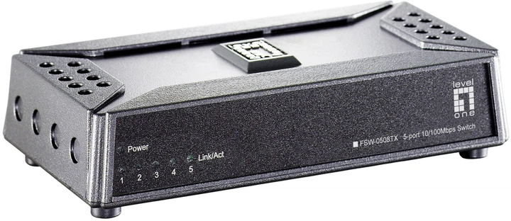 LevelOne FSW-0508TX to kompaktowy, 5-portowy przełącznik Fast Ethernet zaprojektowany z myślą o użytkownikach SOHO i domowych sieciach, którzy potrzebują prostego i niezawodnego sposobu rozbudowy sieci przewodowej. Każdy z 5 portów 10/100BASE-TX zapewnia prędkość do 100 Mbps z możliwością pełnego dupleksu (100 Mbps na odbiór i 100 Mbps na transmisję), zapewniając stacjom roboczym i urządzeniom sieciowym połączenie bez zatorów do codziennych zadań, takich jak przeglądanie internetu, udostępnianie plików oraz usługi IP.
